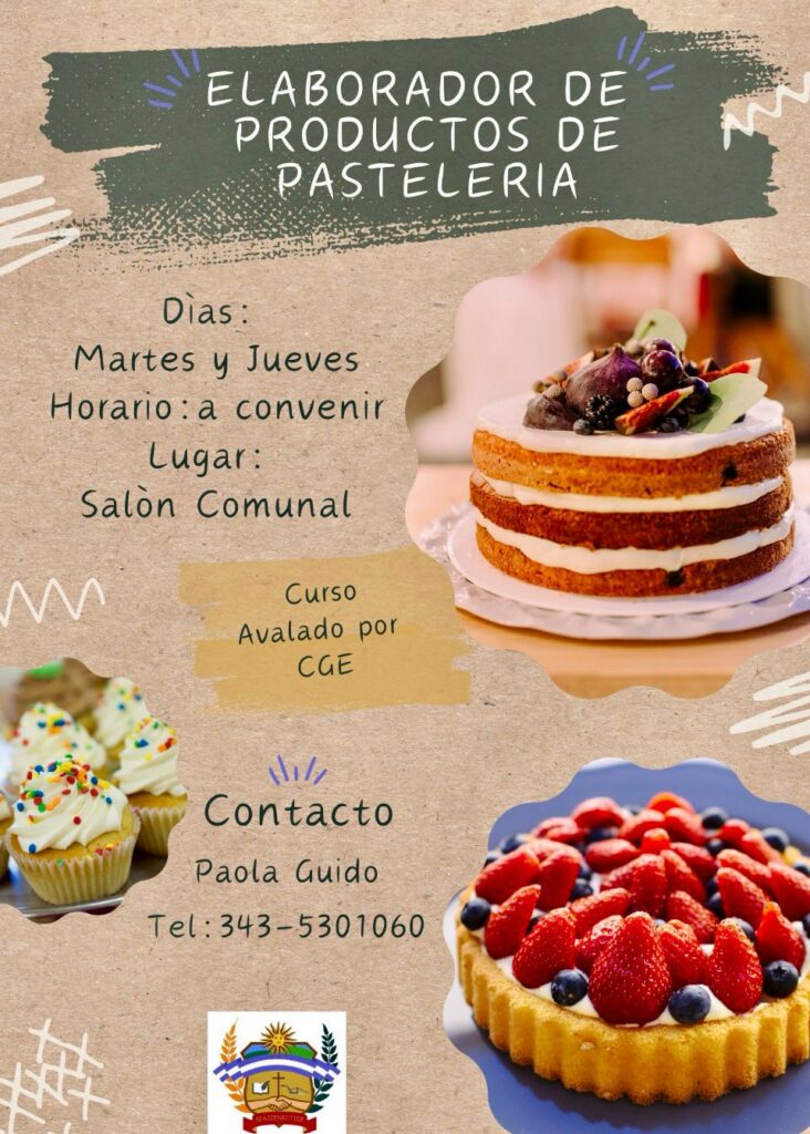 Y otra alternativa es la de ‘Elaborador de Productos de Pastelería’ (avalado por el CGE) que se ofrecerá los martes y jueves, también en horario a convenir, dictándose en el Salón Comunal. Contactos: 343 5301060 (Paola Guido).