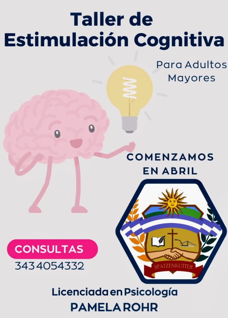 Invitamos a los interesados a sumarse al Taller de Estimulación Cognitiva para adultos mayores, a cargo de la Licenciada en Psicología Pamela Rohr. El comienzo es en abril y las consultas se reciben al 3434054332.