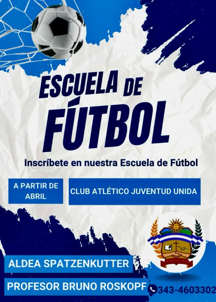 Por otro lado, está la propuesta de la Escuela de Fútbol, también a cargo de Roskopf. Los entrenamientos comenzarán en abril, en el Club Atlético Juventud Unida. Interesados en inscribirse o pedir más información pueden comunicarse al mismo teléfono.